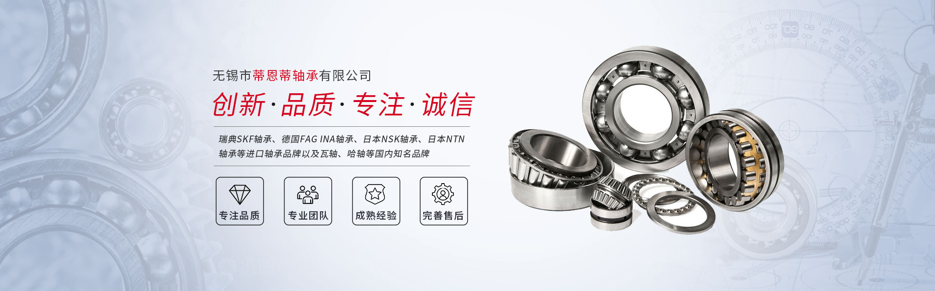 無錫市蒂恩蒂軸承有限公司是一家經銷國產、進口軸承品牌代理的專業公司,公司自成立以來一直以市場為導向,以真誠服務為宗旨,以質量為生命,服務與廣大用戶,竭誠為客戶提供優質的產品和全面的的服務。  主要經營品牌有:瑞典SKF軸承、德國FAG INA軸承、日本NSK軸承、日本NTN軸承等進口軸承品牌以及瓦軸、哈軸等國內知名品牌,產品供應類型包括:深溝球軸承、角接觸球軸承、調心球軸承、圓柱滾子軸承、調心滾子軸承、圓錐滾子軸承、推力球軸承、球面滾子軸承、滾針軸承、直線軸承等各種優質軸承...